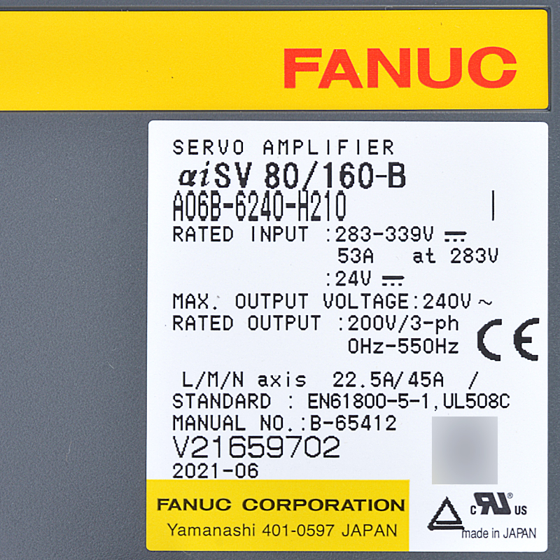 Fanuc drev A06B-6240-H210 Fanuc servoforstærker aiSV 80/160-B